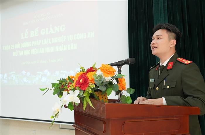Tại buổi Lễ, đại diện học viên khóa học đã gửi lời cảm ơn sâu sắc đến Đảng ủy, Ban Giám đốc Học viện, các thầy giáo, cô giáo, các đơn vị chức năng của Học viện đã quan tâm, tạo mọi điều kiện để khóa học thành công tốt đẹp và hứa sau khi trở về đơn vị công tác tại sẽ tích cực học hỏi, trau dồi, áp dụng hiệu quả kiến thức đã được học, phục vụ thực tiễn công tác chuyên môn.