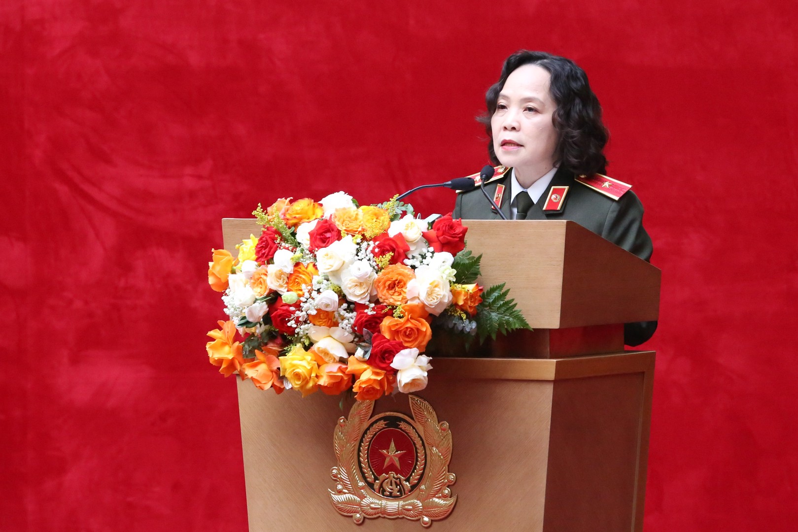 Thiếu tướng Phạm Thị Lan Anh, Cục trưởng Cục Y tế - Bộ Công an phát biểu đề dẫn Hội thảo.